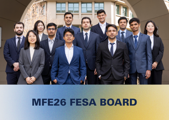 At Berkeley Haas, we believe that leadership is more than a concept you learn in a textbook—it's something actively lived and practiced. In our Master of Financial Engineering (MFE) program, this philosophy comes to life through the Financial Engineering Student Association (FESA). Each year, our MFE students don't just join a cohort; they step up and take the lead, shaping their own experience and that of their peers.